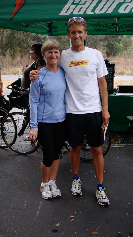 I left sunny San Diego a couple of weeks ago for a short trip to Florida (which also happened to be warm and sunny – I know, my winter training this year has been tough). Anyways, I helped out at Sara McLarty’s “Train with the Pros” camp in Clermont, FL (along with Jarrod Shoemaker and Joanna Zeiger), raced in the Florida’s Great Escape sprint triathlon, visited my parents, picked up a bunch of new gear for the 2009 season (more on that later), and generally took care of business! Here are a few pics: