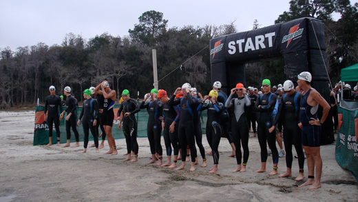 The whole TWTP camp raced in Florida’s Great Escape sprint triathlon. This is the elite swim start.
